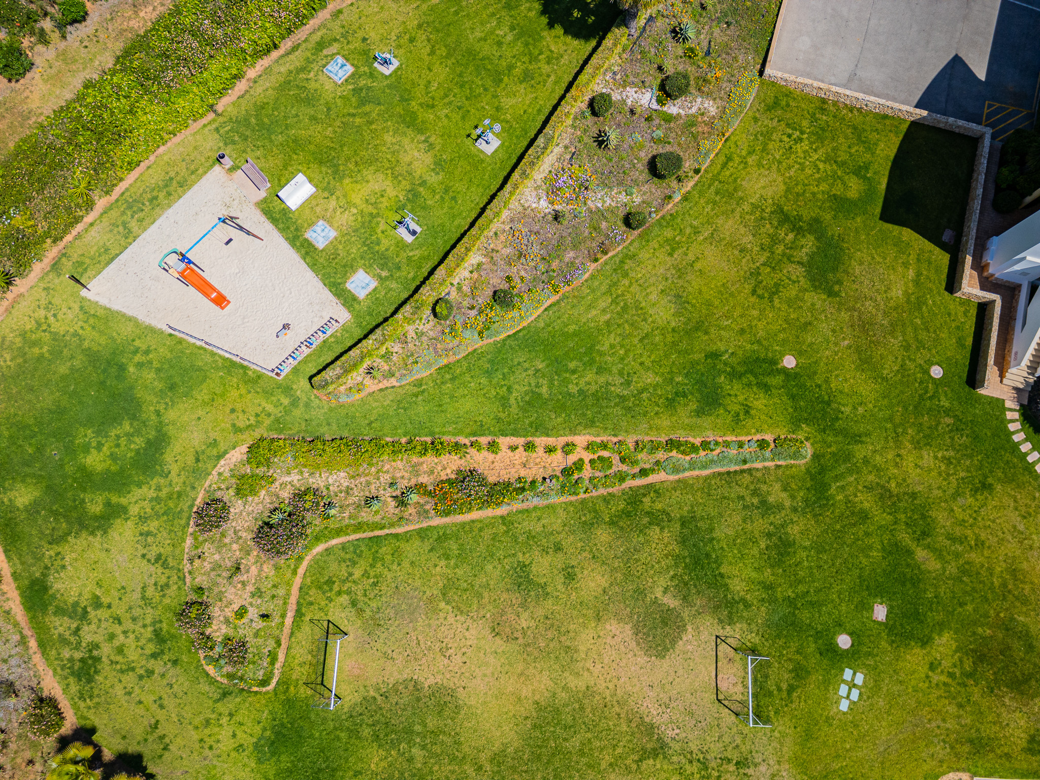 🌿 Jardim extenso com áreas comuns de churrasco