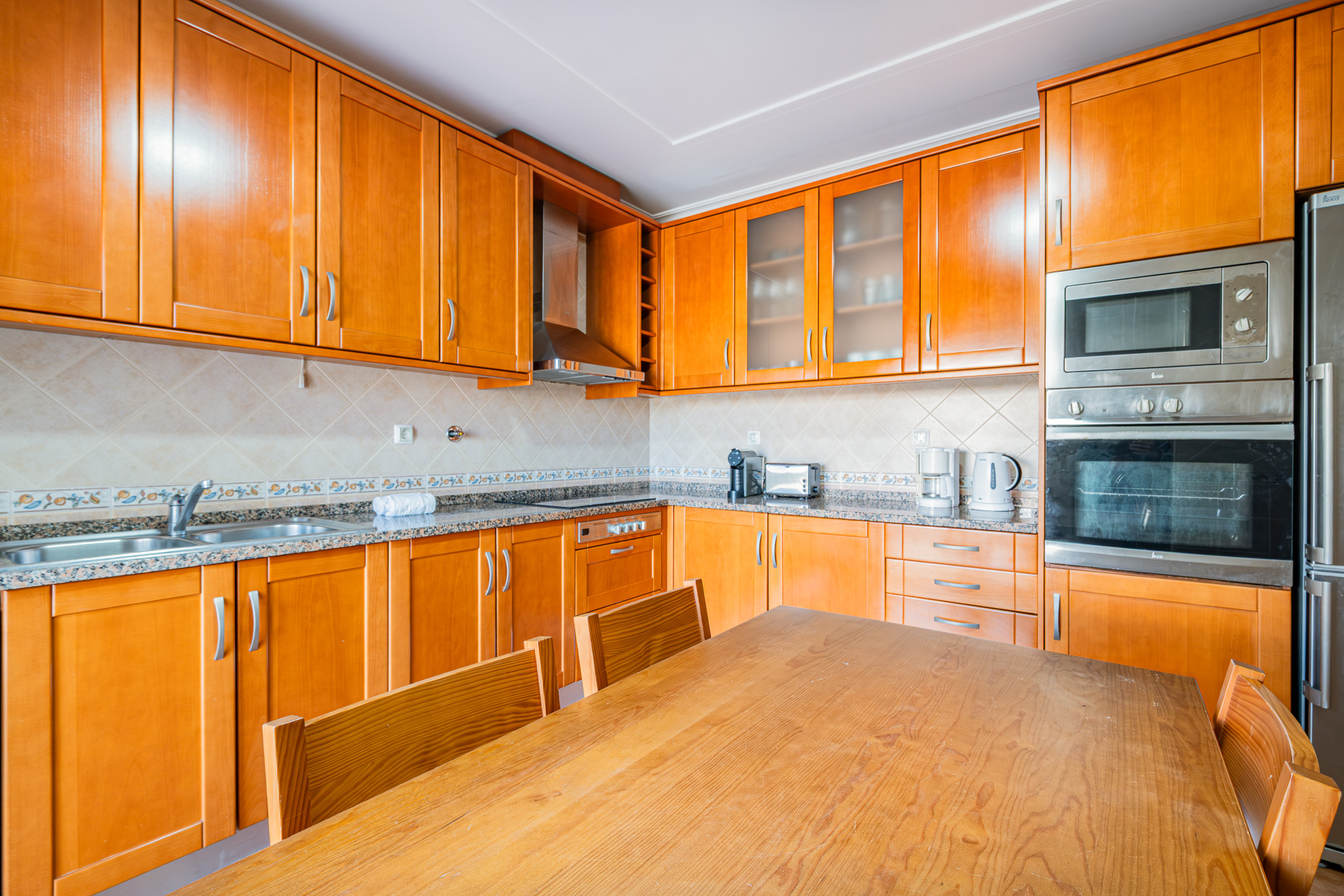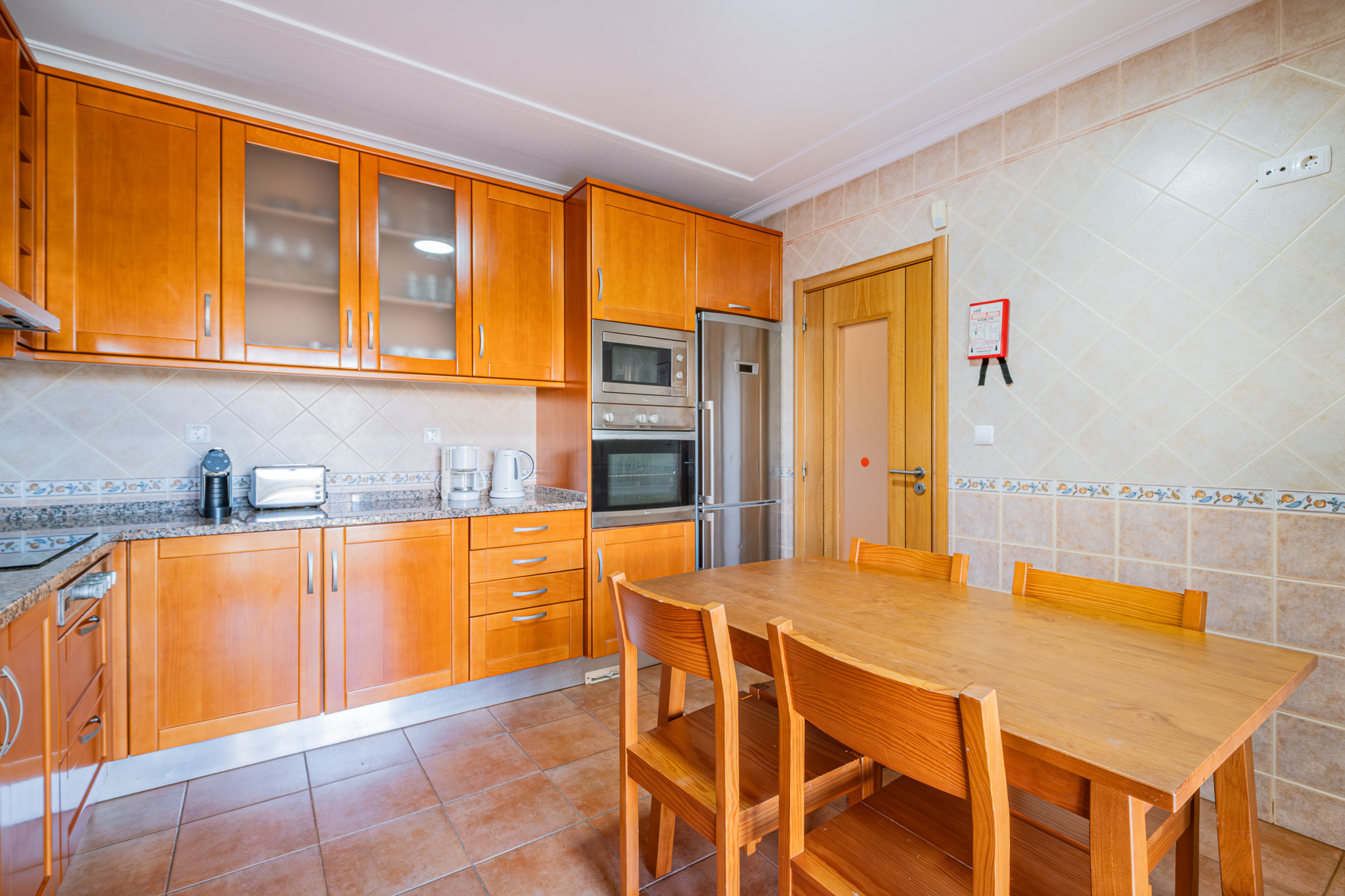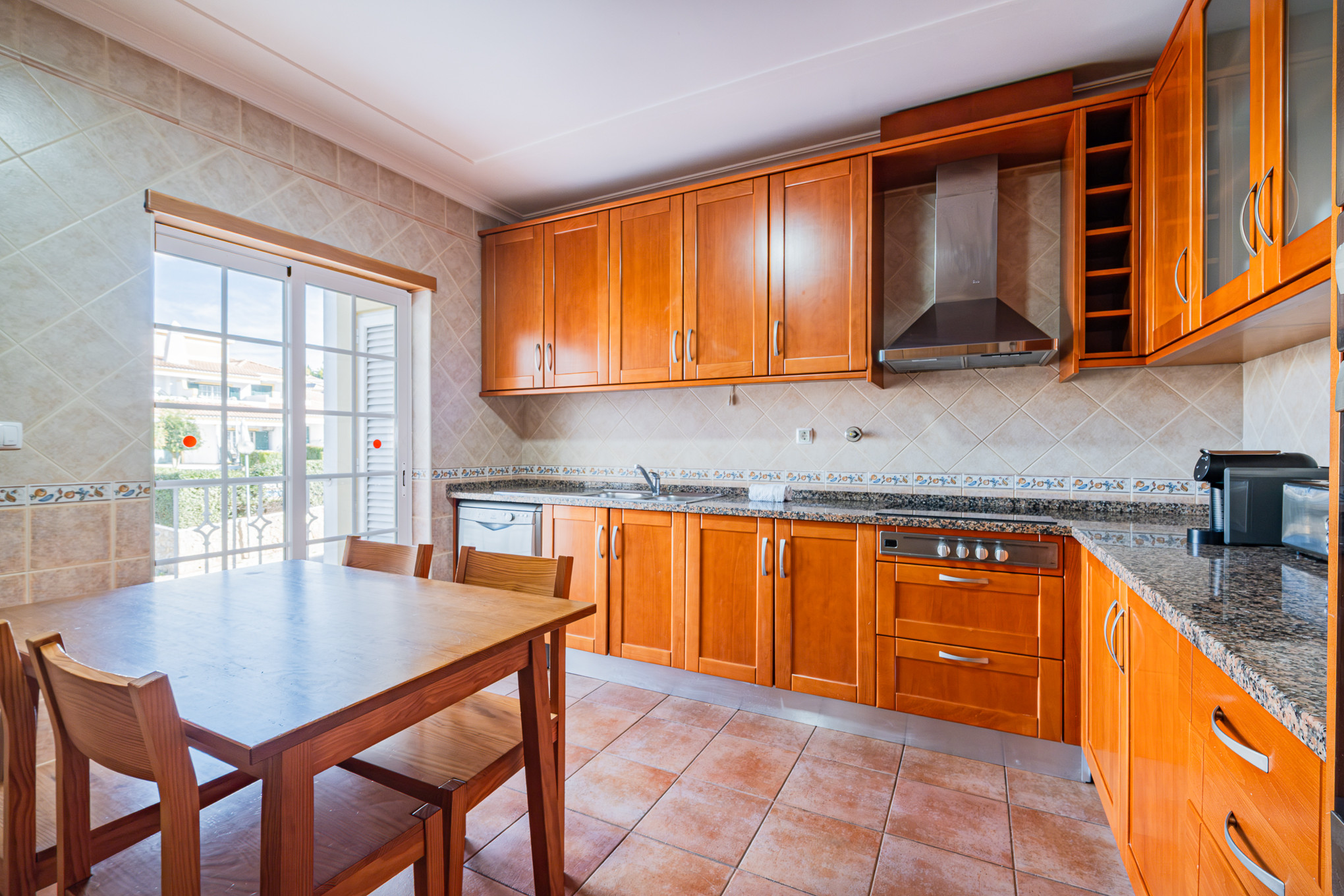 The terraced house in Albufeira has 2 bedrooms and has capacity for 6 people. The terraced house is 140 m². The accommodation is equipped with the following items: garden, garden furniture, terrace, washing machine, barbecue, fireplace, iron, safe, internet (Wi-Fi), hair dryer, tennis court, communal+children's swimming pool, open-air parking the same building, 1 TV, satellite tv (Languages: Spanish, English, French).the kitchen, refrigerator, microwave, oven, freezer, dishwasher, dishes/cutlery, kitchen utensils, coffee machine, toaster and kettle are provided.